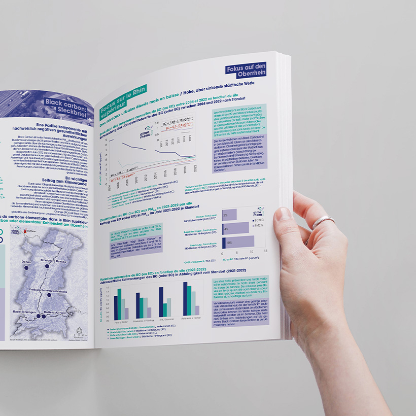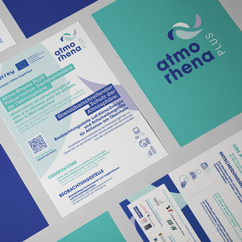Nous avons pu concevoir différents supports pour Atmo-Rhena Plus, leur identité visuelle dont le logo, des brochures et de nouveaux pictogrammes. Acteur clé de la surveillance de la qualité de l’air dans le Rhin supérieur, il s'agit d'un organisme transfrontalier ayant pour but de mieux comprendre et protéger l’air que nous respirons.