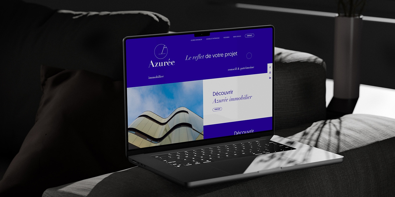 Nous avons pu concevoir l’identité visuelle d’Azurée Immobilier : logo, slogan, charte graphique et site internet. Une image élégante et contemporaine portée par un bleu roi affirmé, reflet de la confiance et de l’exigence de Nathalie Malo sa fondatrice.