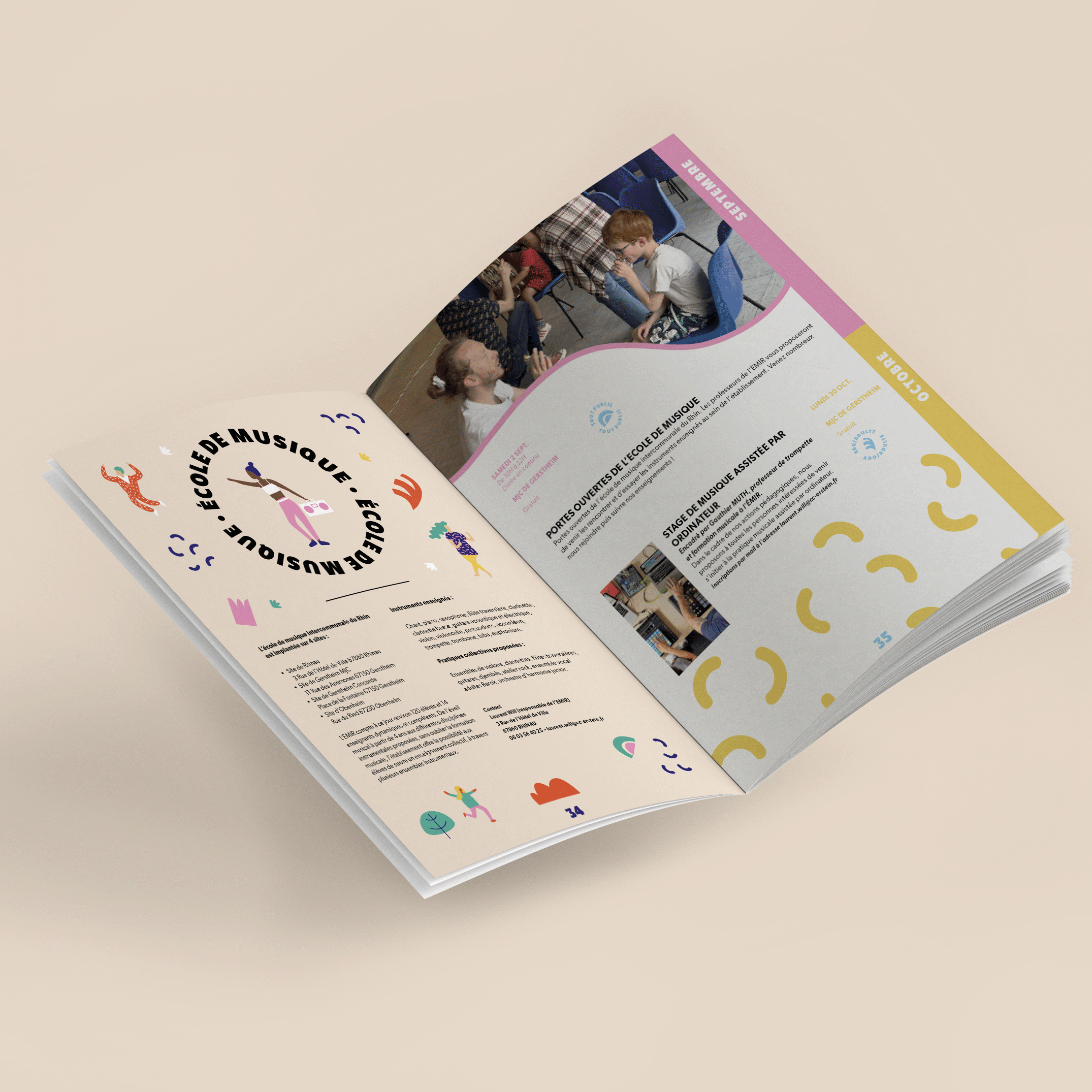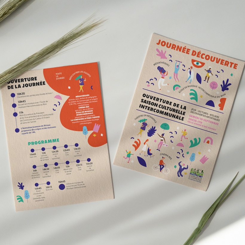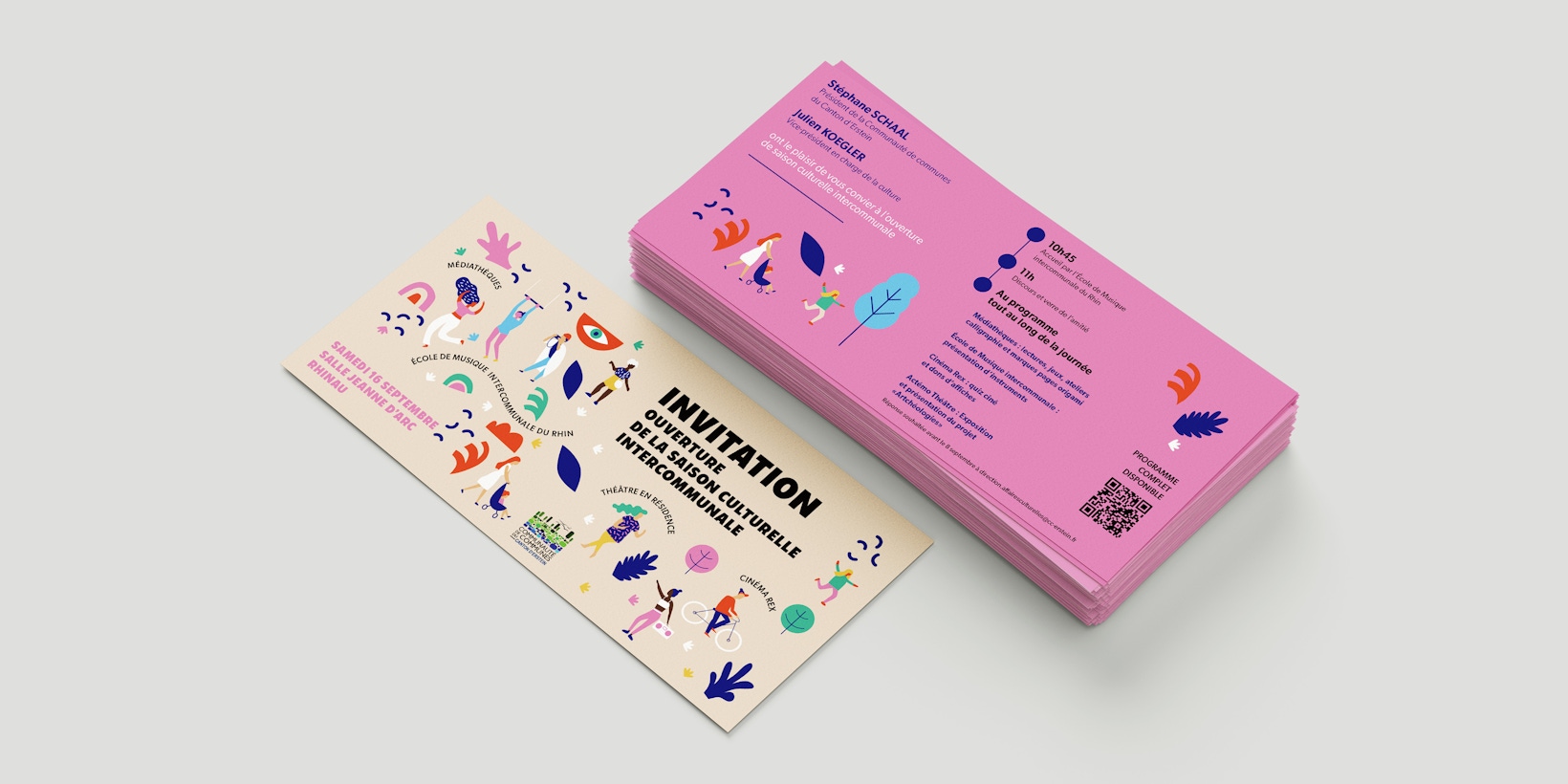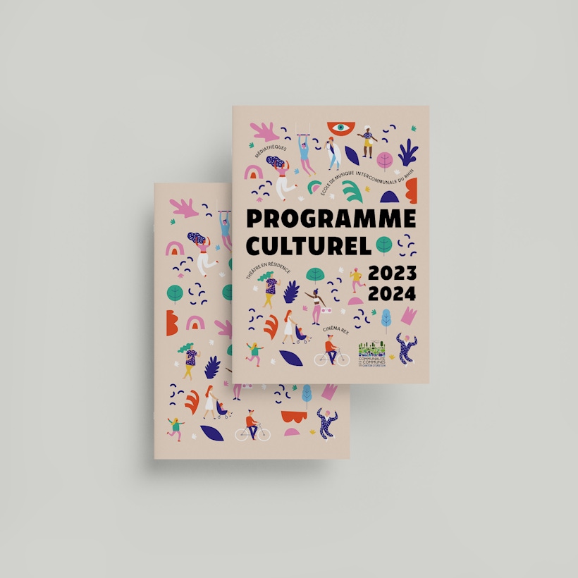 Dans le cadre de la saison 2023/2024, nous avons conçu un visuel qui illustre la richesse des pratiques artistiques et des publics. Ce visuel a été décliné en brochure, invitation et supports de communication pour promouvoir l'événement d’ouverture et valoriser les acteurs culturels du territoire.