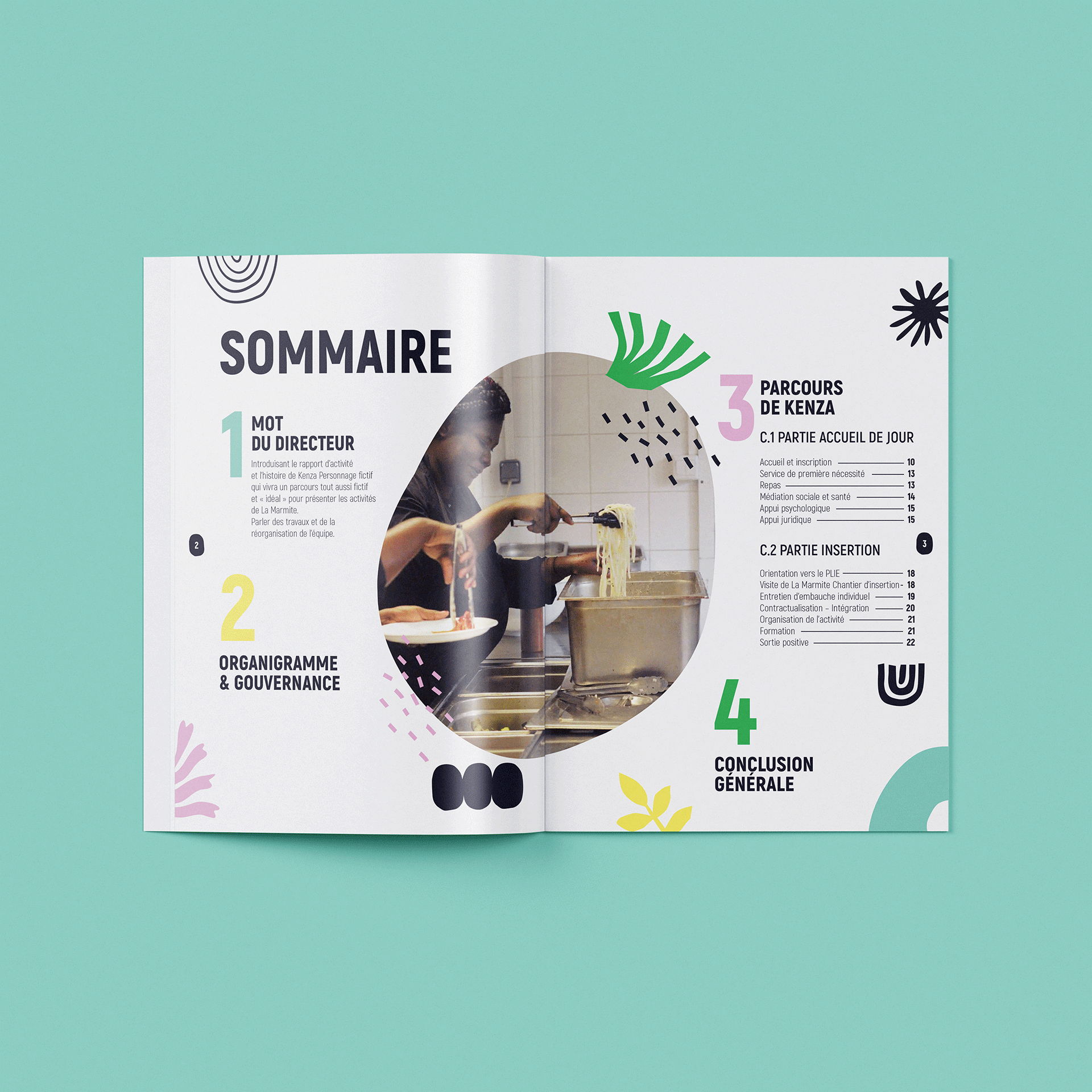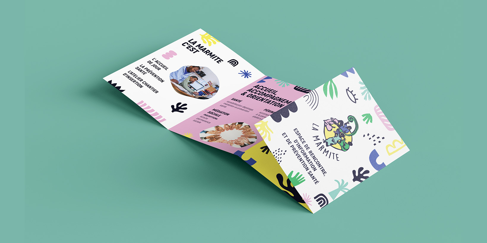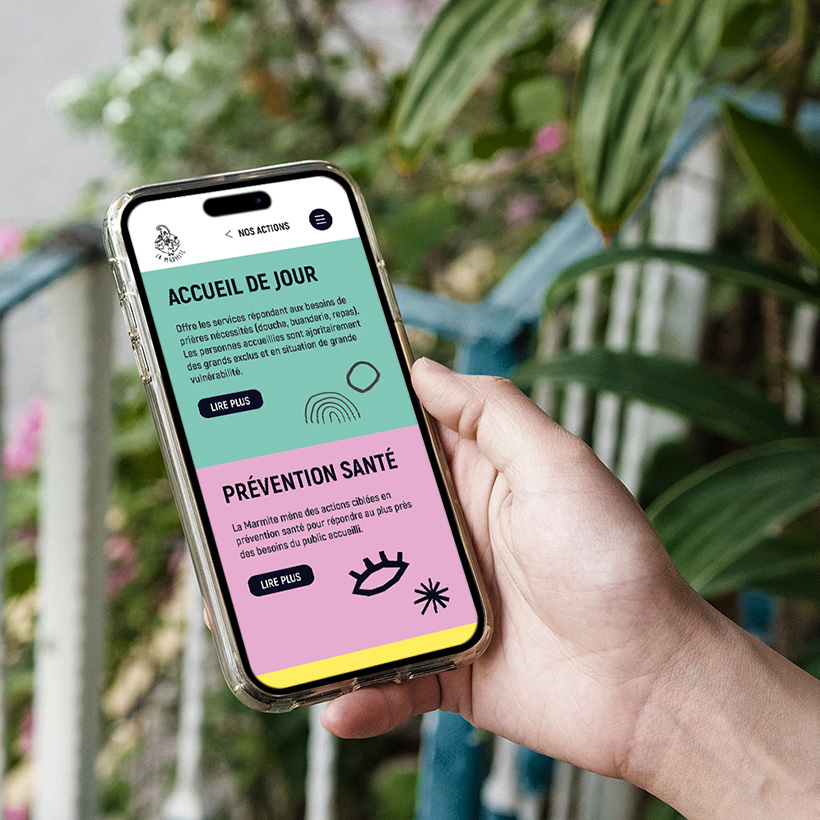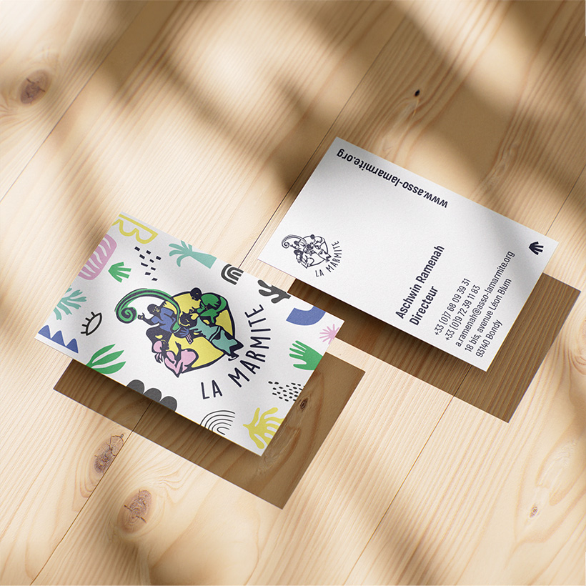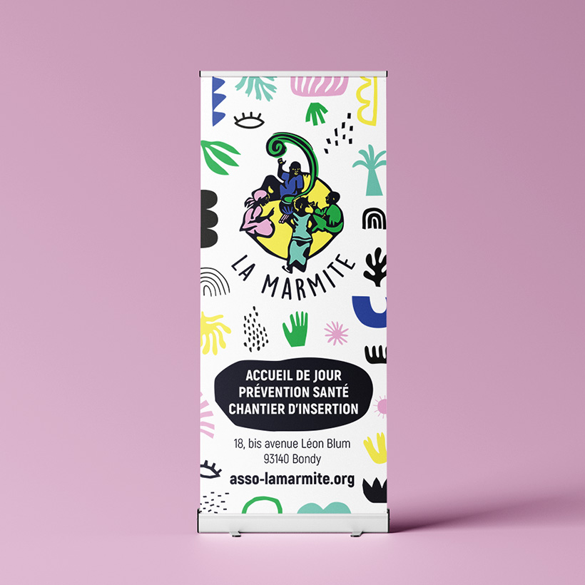 La Marmite est une association qui accueille et propose divers dispositifs pour prévenir et combattre la précarité. Il était donc primordial d'avoir une identité visuelle qui projette chaleur et convivialité dans sa communication, soutenue par un choix de palette qui apporte en dynamisme et un fort aspect iconographique.