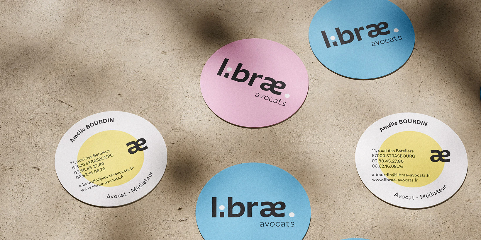 Une identité graphique et un nouveau site pour le cabinet d'avocats LIBRAE, basé à Strasbourg. Visant une approche sympathique, décalée et colorée cette charte se développe en web et print avec un site vitrine et des cartes de visite toutes en rondeur et couleur. Le logo associe courbes et lignes droites pour poser les bases de Librae, bienveillance et sérieux.