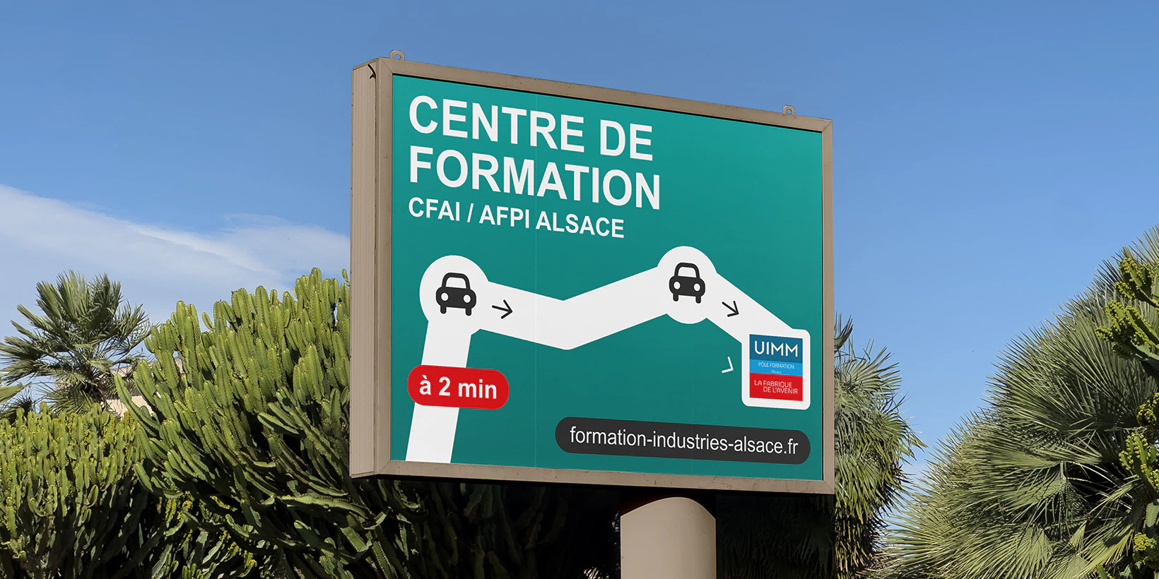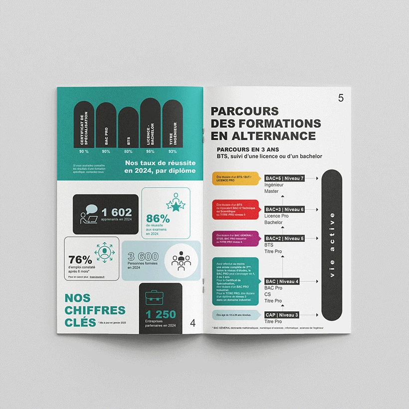 UIMM est un centre de formation aux métiers de l’industrie dans toute la France. Pour le pôle d’Alsace, nous avons eu l’occasion de mettre en page une brochure compilant toutes leurs formations en alternance. La réalisation d’autres supports visuels tels que des panneaux et flyers ont permis d’étoffer et renforcer la communication pour cette année.